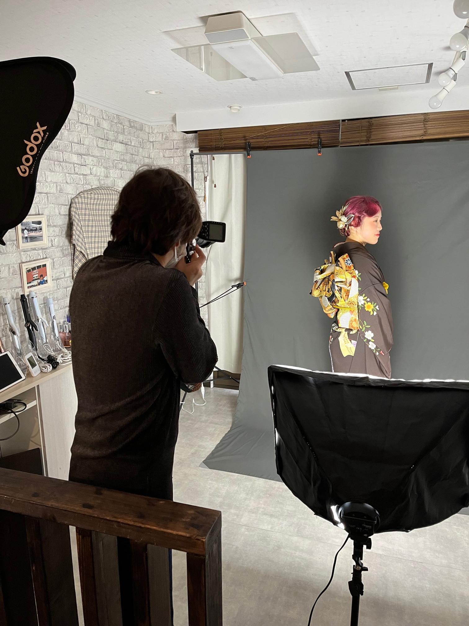 当日はムジカで着付、ヘアセットを行い、お会計後にブギーで写真撮影をサービスで行います。